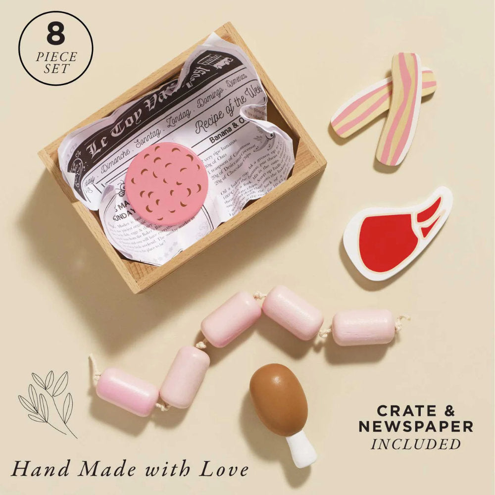 Le Toy Van – Wooden Butchers Meat Food Crate – 7pcs
